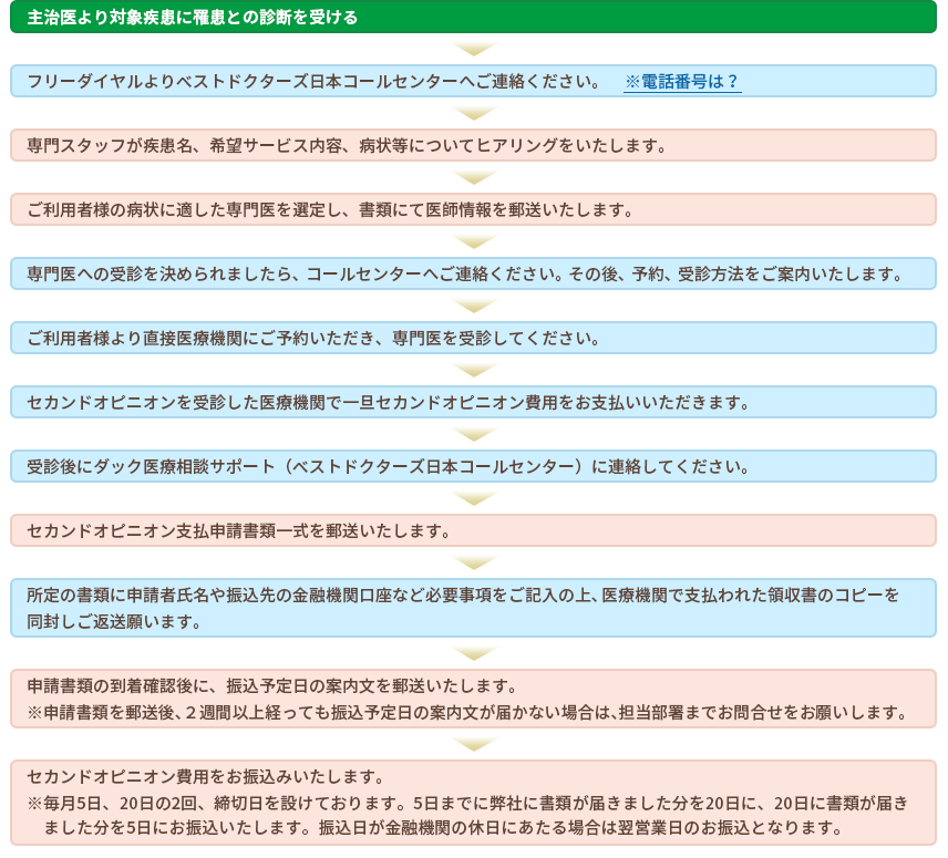 ダックの医療相談サポートでセカンドオピニオンサービスをご利用いただいた場合には、一旦医療機関でお支払いされた料金を、後日お支払いいたしますので、実質無料でご利用いただけます。